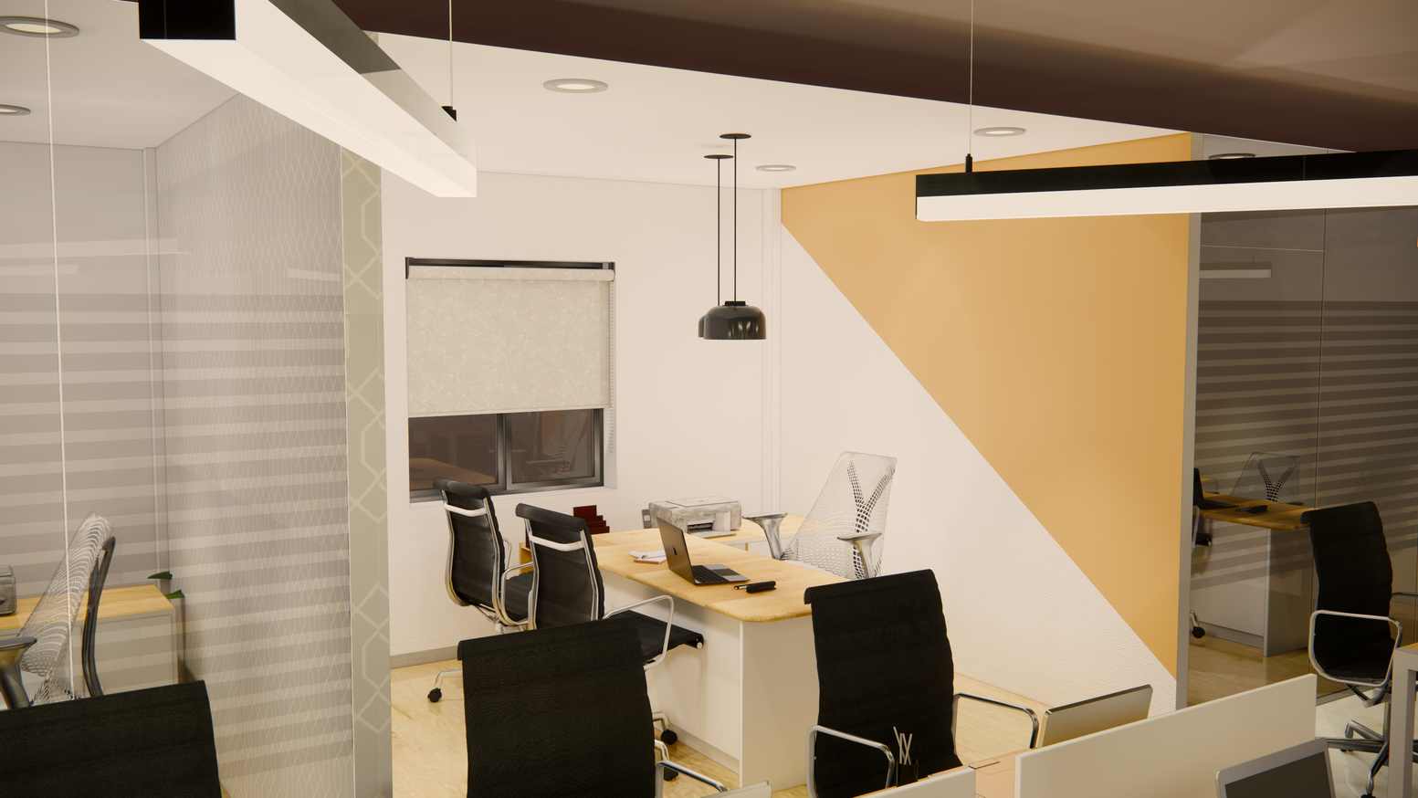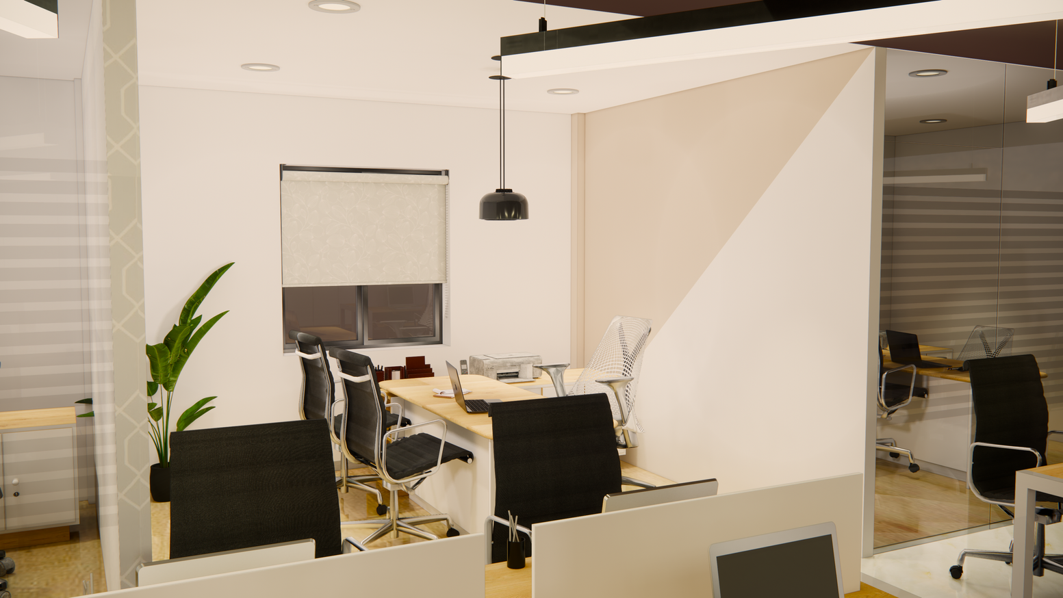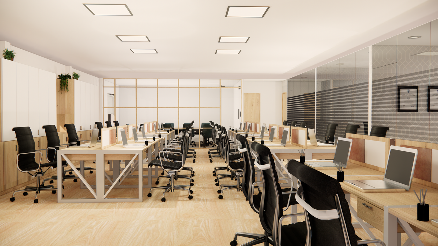 Design of an office space with a focus on enhancing productivity and well-being.