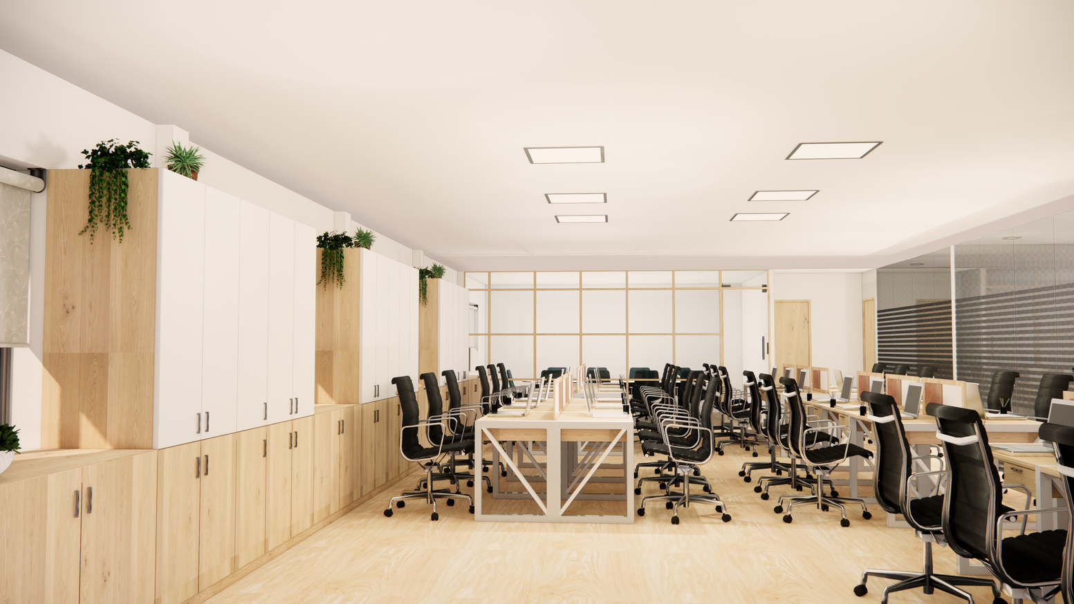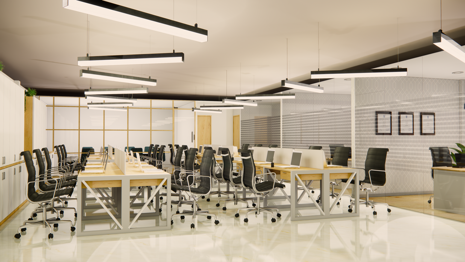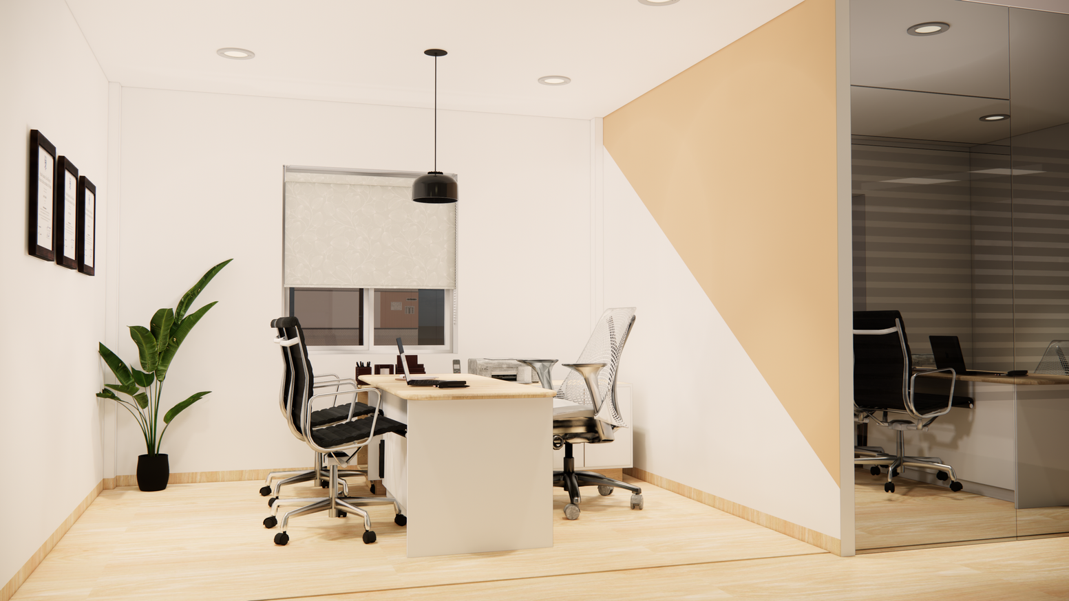 Design of an office space with a focus on enhancing productivity and well-being.